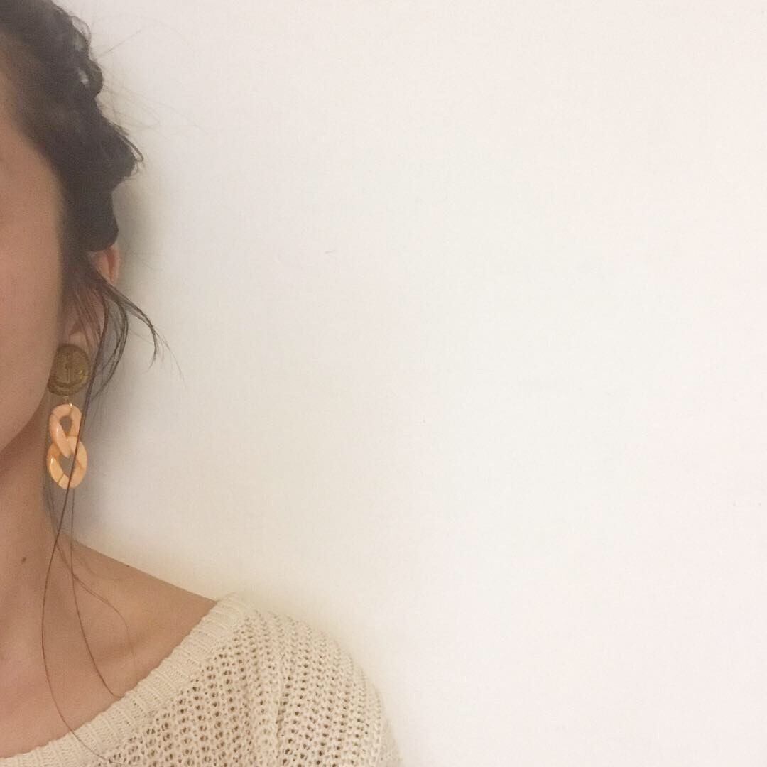 ヴィンテージチェーンパーツで大好きな異素材コンビのイヤリング作りました .。.:*○