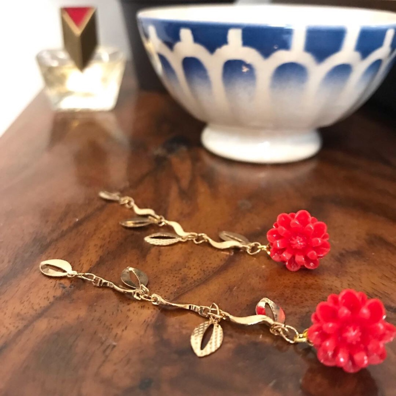トップにとってもレトロなフラワーパーツを付けました *・。‐*・*。
