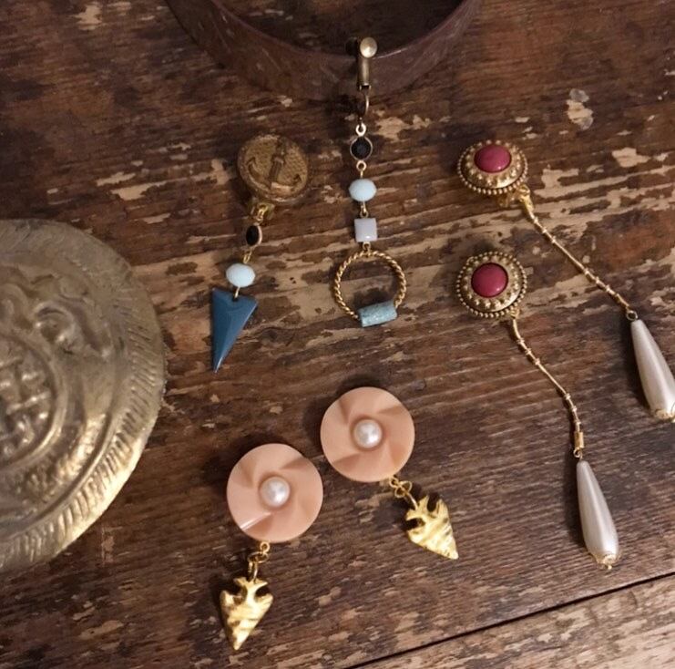 古着ニットと合わせた個性派コーデにもよく合う イヤリングに仕上がりました ⑅◡̈*